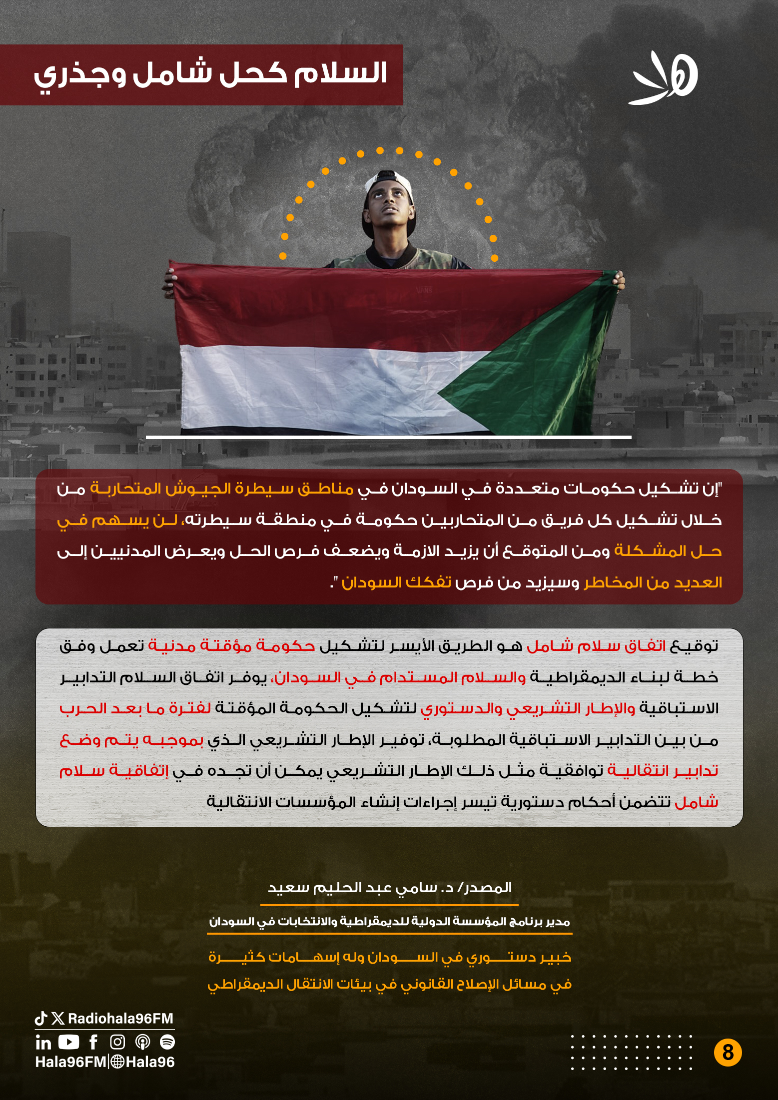 “من الصعب التكهن بتشكيل حكومة مدنية مستقلة من الكفاءات تعمل على بناء السلام..وتهيئ الأوضاع للانتقال الديمقراطي في ظل استمرار النزاع المسلح في السودان”..